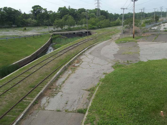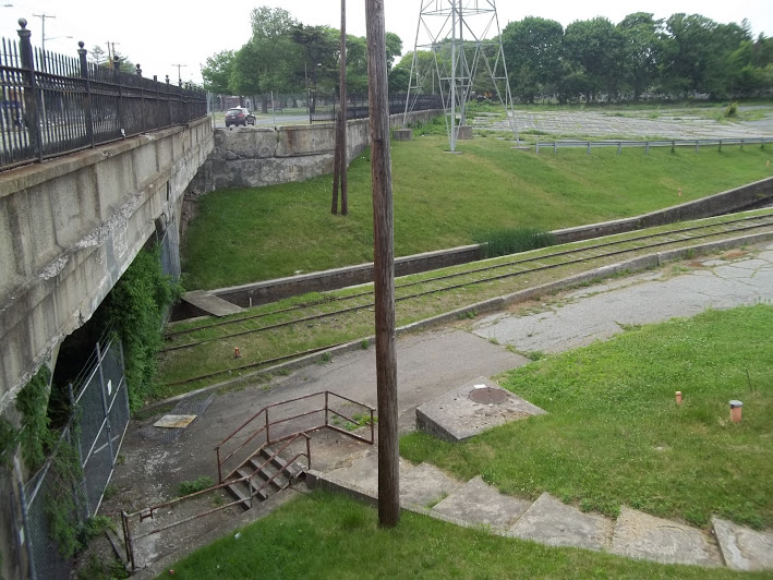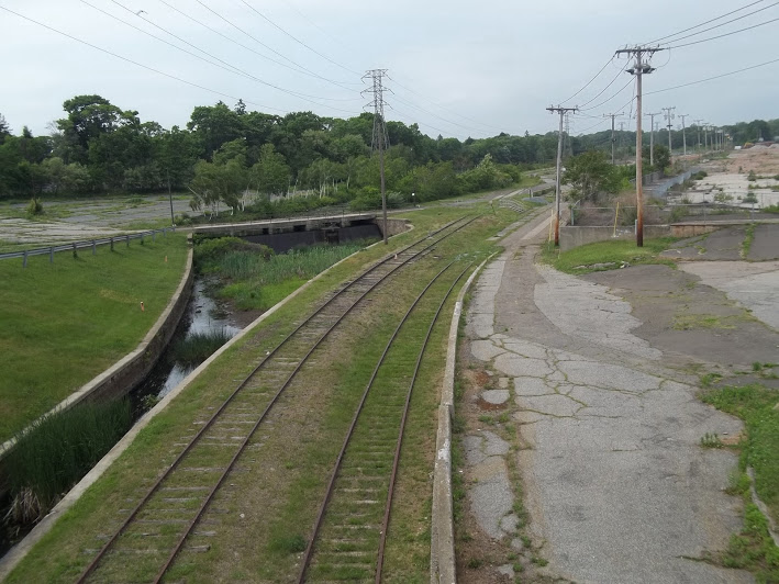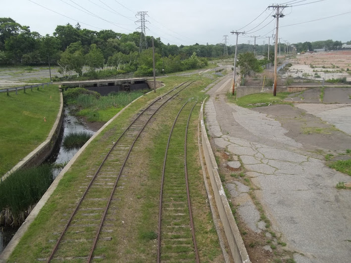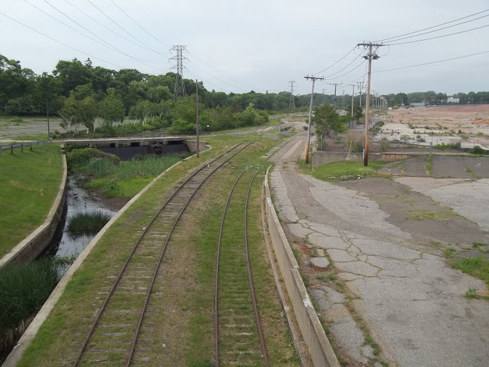 This is one of industrial spurs (below) coming off Amtrak-Metro-North I label the 'garbage' line. I do not know official name nor origins..yet...(it was called the Cedar Creek Railroad and the last railroad absorbed by the New Haven Railroad) It is segmented up on Amtrak-Metro-North but comes down and travels east. A branch to the south served a large recycling plant (still active but no rail used) and other customers. The line at one time continued east and served a lumber business up to maybe 15 years ago. Prior it continued on and wound around by Bridgeport University and travelled out towards the ocean to serve a industrial business named Sikorsky. See Map 4 Most all tracks are now gone or paved over. There WERE other customers in older days. Even on this photo as you look to left as tracks come down from Metro-North there WAS an industrial spur into the 'business' on the left. Actually their business still lives dealing with large pieces of concrete.